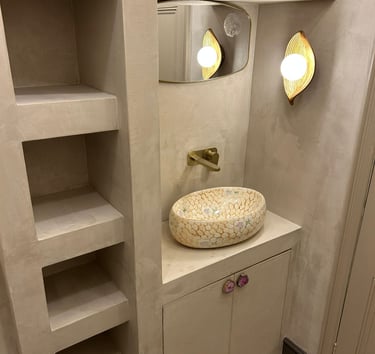 Mosaic: Small pieces of microcement in different colors, creating a personalized effect.