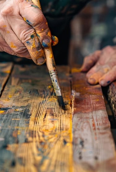 • They apply stains to enhance the natural color of the wood or to achieve the customer's desired color.